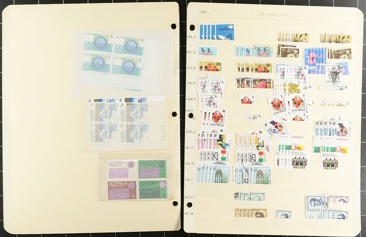 Neatly organized, high quality duplicated mint and used stock of 2,867 stamps, 11 souvenir sheets and 4 booklet panes, 1965 to 1979 decimal currency period issues. The total face value of the useable mint postage is $453.87 AUD = $408.07 CDN. A very balanced lot. Owner's older 2014 Scott US$2,038.50 =