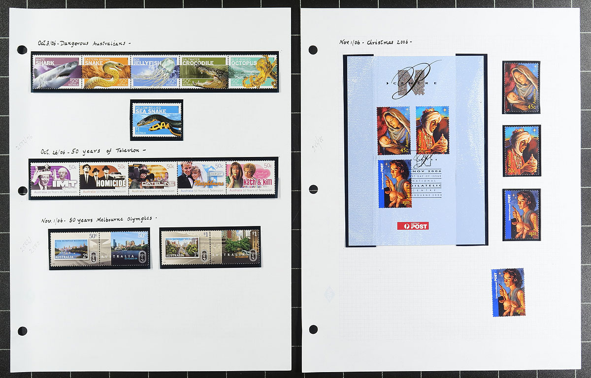Comprehensive VF mint Never Hinged 2004-2007 collection of 284 mint stamps including miniature panes and strips plus some used material. Total usable face value as postage is AUD$234.15 = $210.50 CDN. Owner's older 2014 Scott US$640.25 =