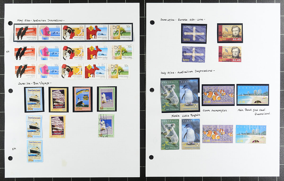 Comprehensive VF mint Never Hinged 2004-2007 collection of 284 mint stamps including miniature panes and strips plus some used material. Total usable face value as postage is AUD$234.15 = $210.50 CDN. Owner's older 2014 Scott US$640.25 =