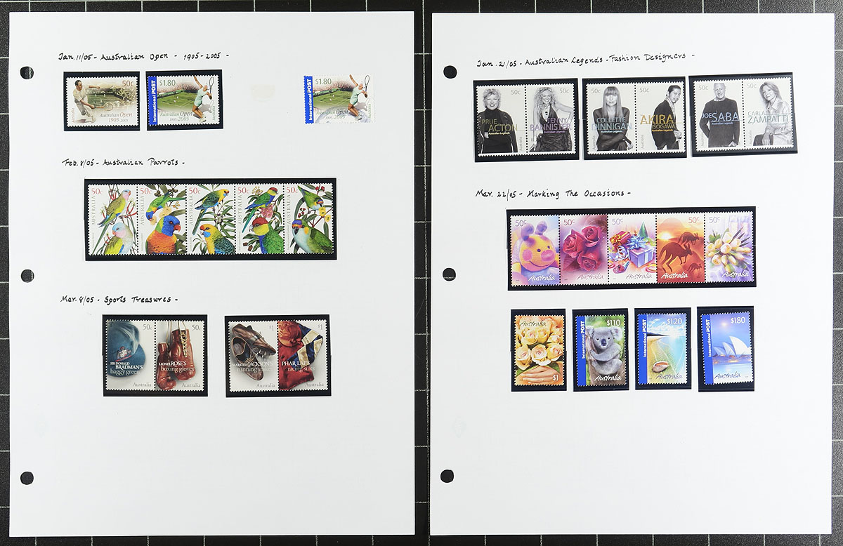 Comprehensive VF mint Never Hinged 2004-2007 collection of 284 mint stamps including miniature panes and strips plus some used material. Total usable face value as postage is AUD$234.15 = $210.50 CDN. Owner's older 2014 Scott US$640.25 =