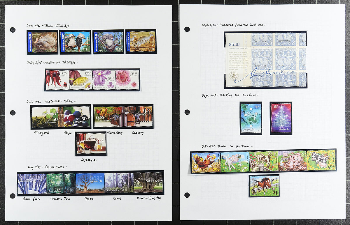 Comprehensive VF mint Never Hinged 2004-2007 collection of 284 mint stamps including miniature panes and strips plus some used material. Total usable face value as postage is AUD$234.15 = $210.50 CDN. Owner's older 2014 Scott US$640.25 =