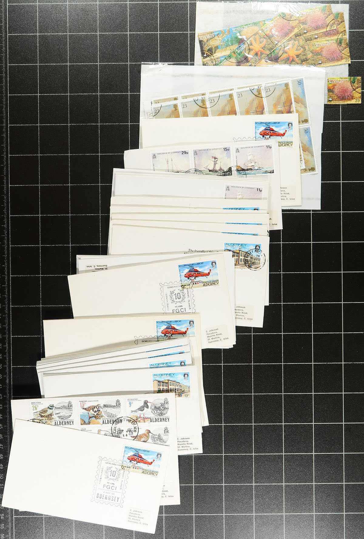 Exceptionally clean, comprehensive balanced CDS used (CTO) dealers stock of the scarce early sets, souvenir sheets, booklets and singles from this popular "late addition" Channel Island stamp issuing entity. While there are between one and fifty examples of any given set, souvenir sheet, booklet or single, the majority are here in quantities of ten of each. Many of the sets are in blocks. A most unusual and useful offering, perfect for the show dealer or investor. We have never seen this much used Alderney in one lot before. See the scans for the neatly hand-written two page inventory list. Owner's older 2013 Scott US$4,810.30 =