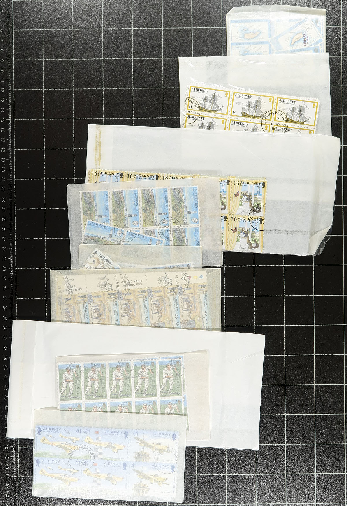 Exceptionally clean, comprehensive balanced CDS used (CTO) dealers stock of the scarce early sets, souvenir sheets, booklets and singles from this popular "late addition" Channel Island stamp issuing entity. While there are between one and fifty examples of any given set, souvenir sheet, booklet or single, the majority are here in quantities of ten of each. Many of the sets are in blocks. A most unusual and useful offering, perfect for the show dealer or investor. We have never seen this much used Alderney in one lot before. See the scans for the neatly hand-written two page inventory list. Owner's older 2013 Scott US$4,810.30 =