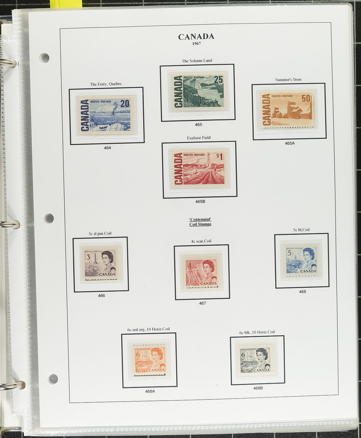 The "immaculate" mint collection, Part #1. VF mint Never Hinged run of years 1961-1980 (#392-882) all neatly arranged in mounts, on computer generated pages, with all pages being in page-protectors within a 3" binder. Seemingly complete for the period for single stamps, but also includes showings of plate blocks, booklet panes, complete booklets, blocks and even a couple FDC. Meticulously arranged and maintained. Conservatively valued for the total face value only. Pictures show a representative sample. Total face value =
