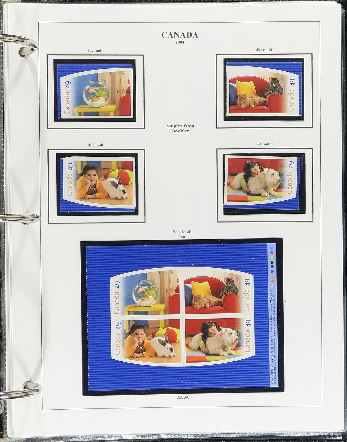 The "immaculate" mint collection, Part #4. VF mint Never Hinged run of years 2000-2004 (#1831-2082) all neatly arranged in mounts, on computer generated pages, with all pages being in page-protectors within a 3" binder. Almost complete for the period for single stamps, but also includes showings of souvenir sheets, blocks, booklet singles etc. Meticulously arranged and maintained. Conservatively valued for the total face value only. Pictures show a representative sample. Total face value =
