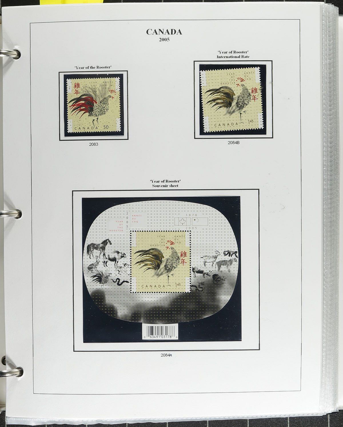The "immaculate" mint collection, Part #5. VF mint Never Hinged run of years 2005-2007 (#2083-2256) all neatly arranged in mounts, on computer generated pages, with all pages being in page-protectors within a 3" binder. Almost complete for the period for single stamps, but also includes showings of souvenir sheets, blocks, booklet singles, booklet panes etc. Meticulously arranged and maintained. Conservatively valued for the total face value only. Pictures show a representative sample. Total face value =