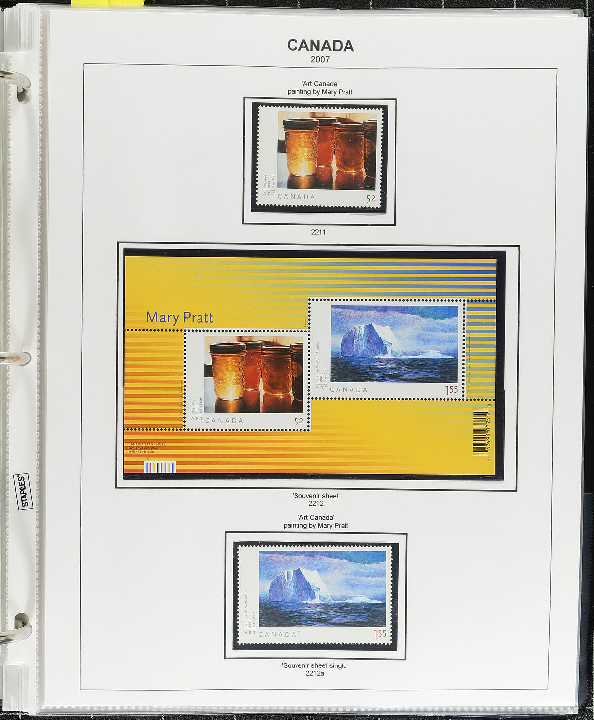 The "immaculate" mint collection, Part #5. VF mint Never Hinged run of years 2005-2007 (#2083-2256) all neatly arranged in mounts, on computer generated pages, with all pages being in page-protectors within a 3" binder. Almost complete for the period for single stamps, but also includes showings of souvenir sheets, blocks, booklet singles, booklet panes etc. Meticulously arranged and maintained. Conservatively valued for the total face value only. Pictures show a representative sample. Total face value =