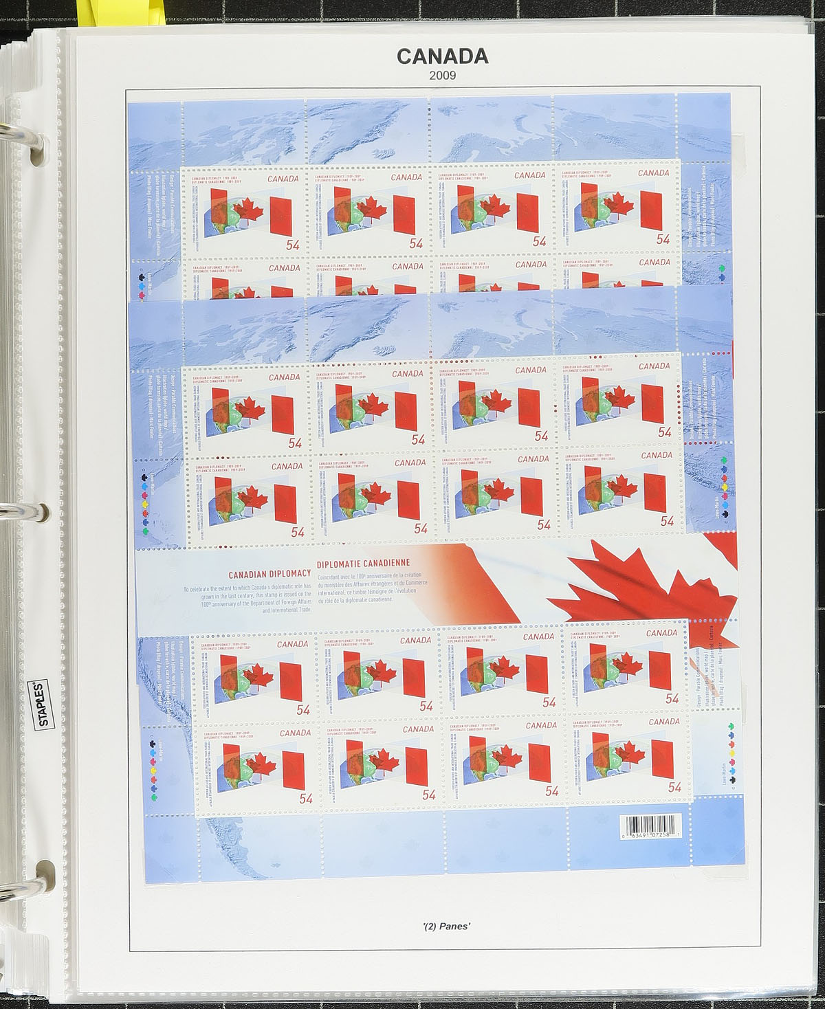 The "immaculate" mint collection, Part #6. VF mint Never Hinged run of years 2008-2010 (#2257-2415) all neatly arranged in mounts, on computer generated pages, with all pages being in page-protectors within a 3" binder. Almost complete for the period for single stamps, but also includes showings of souvenir sheets, blocks, booklet singles, booklet panes etc. Of particular note, is the transition to "P" stamps during this period, with the majority of the later lettermail rates be represented by "P" stamps. Meticulously arranged and maintained. Conservatively valued for the total face value only. Pictures show a representative sample. Total face value =
