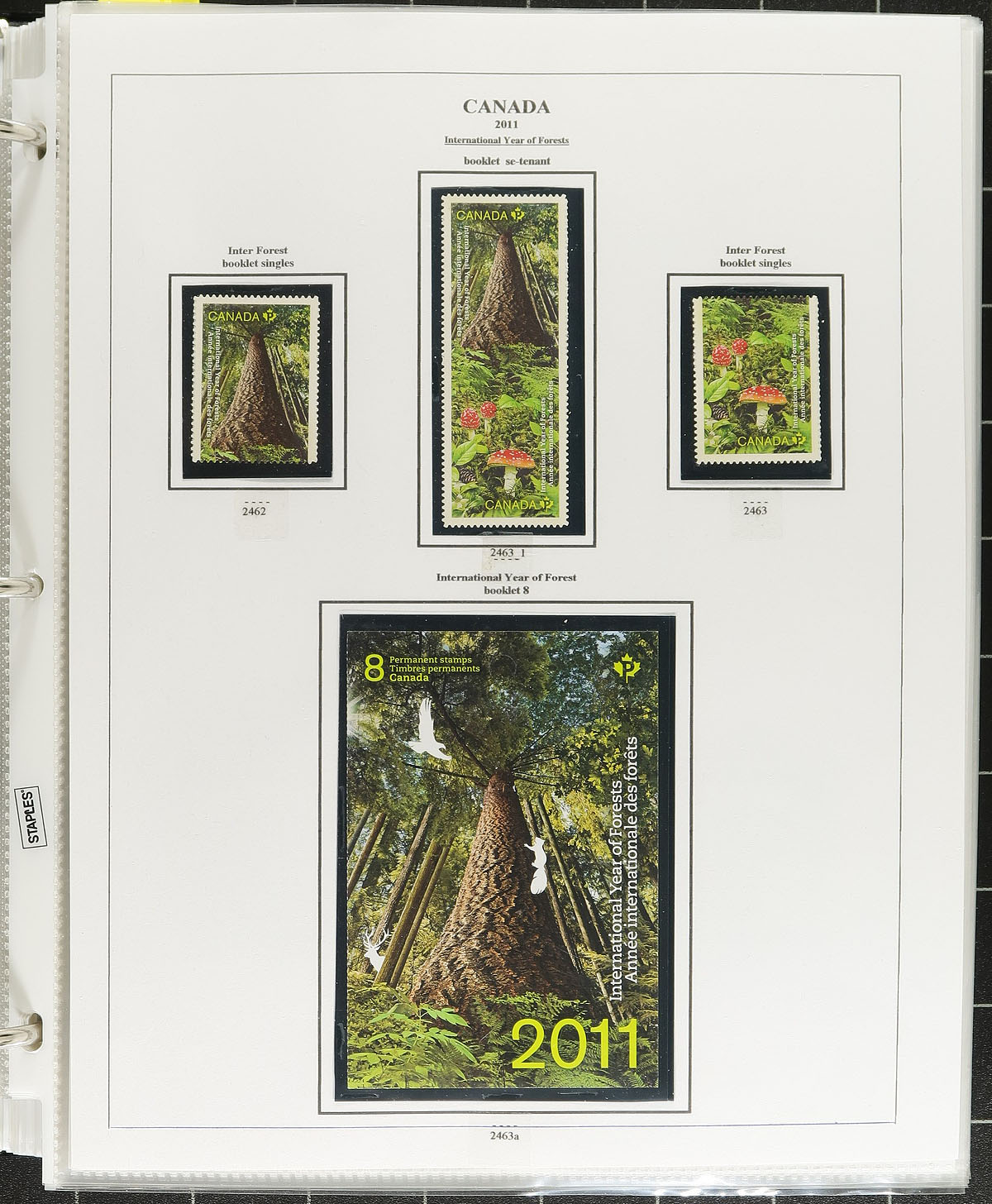 The "immaculate" mint collection, Part #7. VF mint Never Hinged run of years 2011-2012 (#2416-2598) all neatly arranged in mounts, on computer generated pages, with all pages being in page-protectors within a 3" binder. Near complete for the period for single stamps, but also includes showings of souvenir sheets, blocks, booklet singles, booklet panes etc. Of particular note, is the abundance of "P" stamps and "dollar plus" values. Meticulously arranged and maintained. Conservatively valued for the total face value only. Pictures show a representative sample. Total face value =