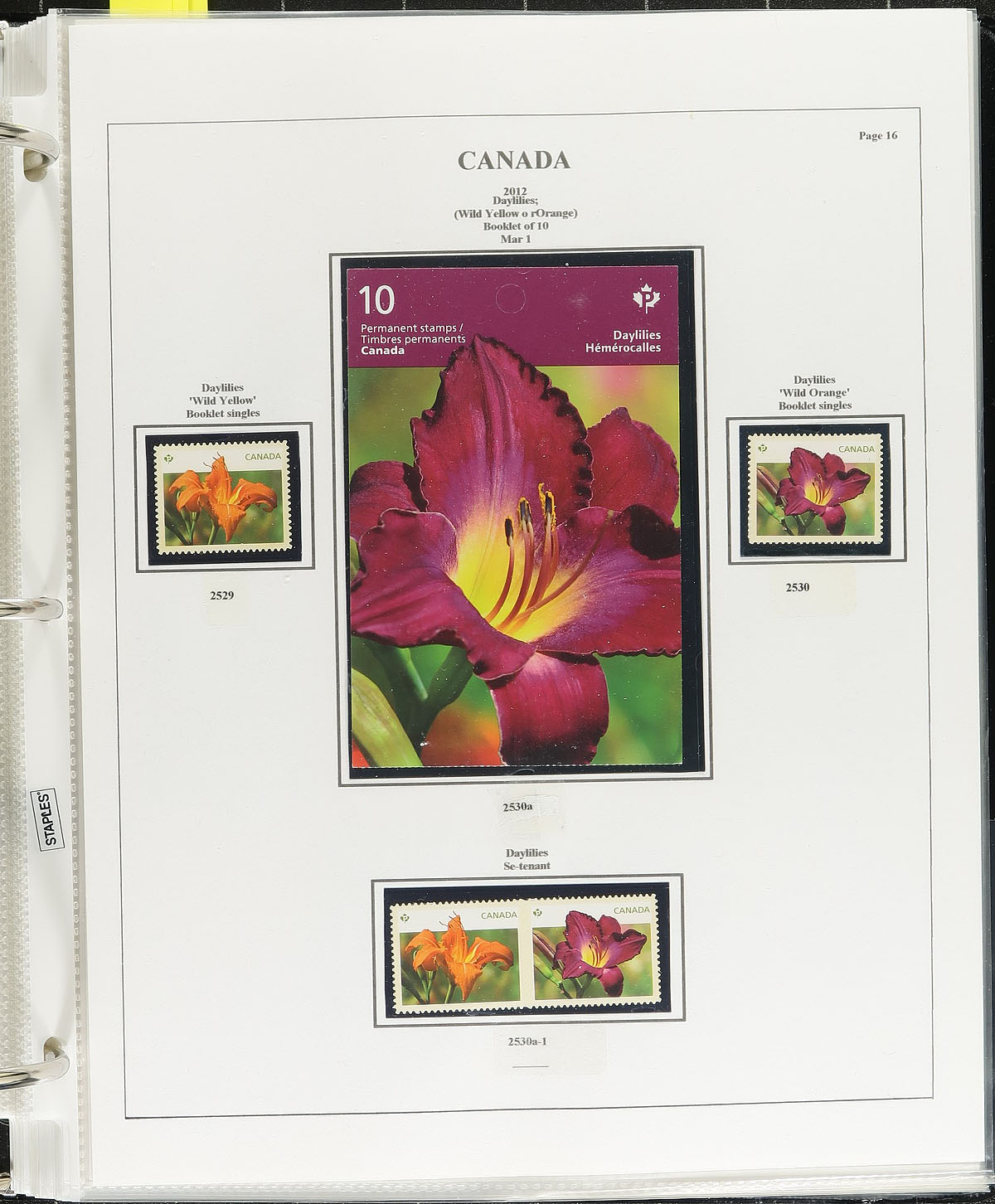 The "immaculate" mint collection, Part #7. VF mint Never Hinged run of years 2011-2012 (#2416-2598) all neatly arranged in mounts, on computer generated pages, with all pages being in page-protectors within a 3" binder. Near complete for the period for single stamps, but also includes showings of souvenir sheets, blocks, booklet singles, booklet panes etc. Of particular note, is the abundance of "P" stamps and "dollar plus" values. Meticulously arranged and maintained. Conservatively valued for the total face value only. Pictures show a representative sample. Total face value =
