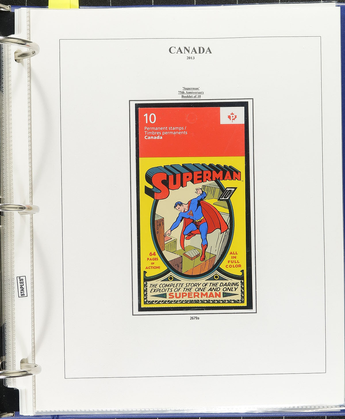The "immaculate" mint collection, Part #8. VF mint Never Hinged run of years 2013-2014 (#2599-2800) all neatly arranged in mounts, on computer generated pages, with all pages being in page-protectors within a 3" binder. Near complete for the period for single stamps, but also includes showings of souvenir sheets, blocks, booklet singles, booklet panes etc. Of particular note, is the abundance of "P" stamps and "dollar plus" values. Meticulously arranged and maintained. Conservatively valued for the total face value only. Pictures show a representative sample. Total face value =