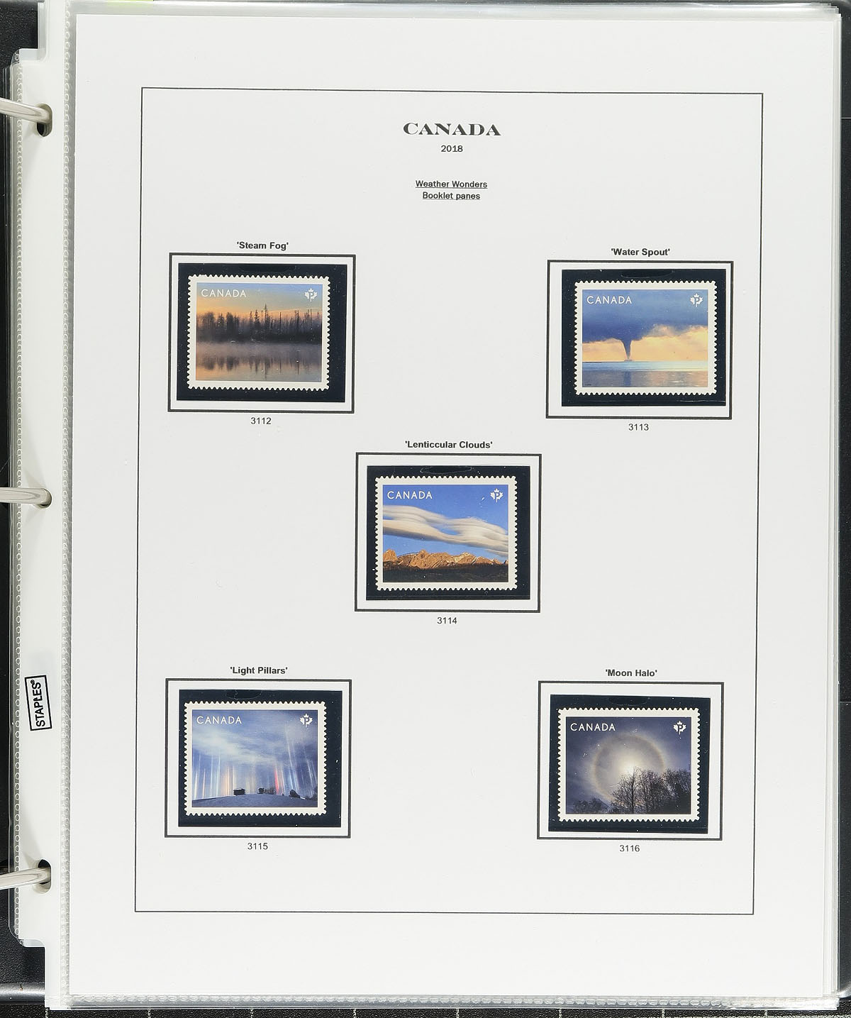 The "immaculate" mint collection, Part #10. VF mint Never Hinged run of years 2018 to mid 2021 (#3052-3289) all neatly arranged in mounts, on computer generated pages, with all pages being in page-protectors within a 3" binder. Near complete for the period for single stamps, but also includes showings of souvenir sheets, blocks, booklet singles, booklet panes etc. Of particular note, is the abundance of "P" stamps and "dollar plus" values. Meticulously arranged and maintained. Conservatively valued for the total face value only. Pictures show a representative sample. Total face value =