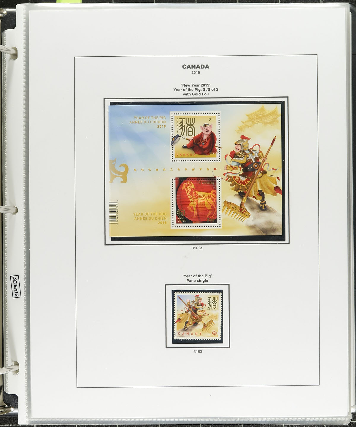 The "immaculate" mint collection, Part #10. VF mint Never Hinged run of years 2018 to mid 2021 (#3052-3289) all neatly arranged in mounts, on computer generated pages, with all pages being in page-protectors within a 3" binder. Near complete for the period for single stamps, but also includes showings of souvenir sheets, blocks, booklet singles, booklet panes etc. Of particular note, is the abundance of "P" stamps and "dollar plus" values. Meticulously arranged and maintained. Conservatively valued for the total face value only. Pictures show a representative sample. Total face value =