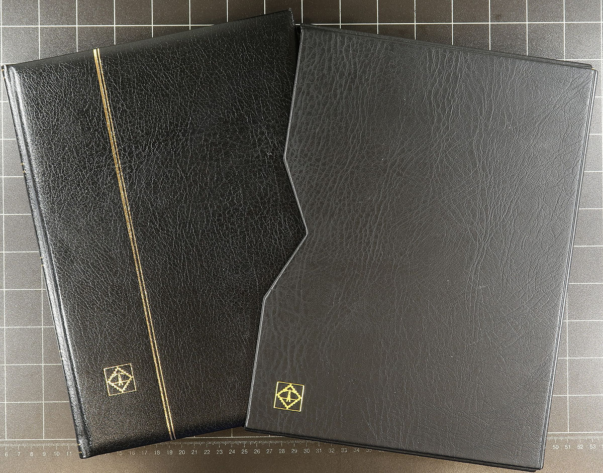 Deluxe padded 32-page Lighthouse brand stockbook, with slipcase containing an array of (mostly) mint Never Hinged Canada. An eclectic array of material here, starting with a showing of QV / QEII Jubilee issues ) the 1897 1c block is Hinged, rest never hinged. The album then transitions to 1930's to 1990's mint Canada, including Newfoundland and "back of the book" issues. A couple notable items are #604a (8c QEII imperforate pair, NH, slight bend at right, catalogue $200.00), George VI Coils, Plate Blocks, sets, Special Delivery Airmail blocks etc. A high-quality offering. Face value of the "modern" stamps alone is $200.00! Estimate =