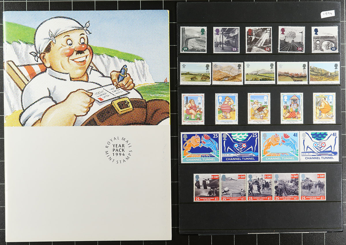 Annual Collectors Packs for 1985, 1986, 1987, 1988, 1989, 1990, 1991, 1992, 1993 and 1994. Ten year run of Royal Mail Collectors packs containing MNH examples of all the commemorative issues produced from 1985 to the end of 1994. The consignor has also added duplicate used stamps, nearly complete for the period. Lots of face value in the mint stamps. Catalogued by SG Concise as year packs only at £407.00 =