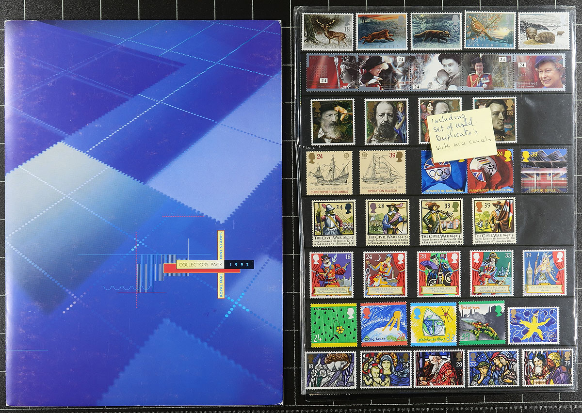 Annual Collectors Packs for 1985, 1986, 1987, 1988, 1989, 1990, 1991, 1992, 1993 and 1994. Ten year run of Royal Mail Collectors packs containing MNH examples of all the commemorative issues produced from 1985 to the end of 1994. The consignor has also added duplicate used stamps, nearly complete for the period. Lots of face value in the mint stamps. Catalogued by SG Concise as year packs only at £407.00 =