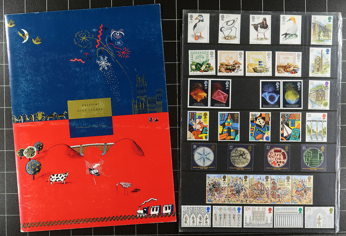 Annual Collectors Packs for 1985, 1986, 1987, 1988, 1989, 1990, 1991, 1992, 1993 and 1994. Ten year run of Royal Mail Collectors packs containing MNH examples of all the commemorative issues produced from 1985 to the end of 1994. The consignor has also added duplicate used stamps, nearly complete for the period. Lots of face value in the mint stamps. Catalogued by SG Concise as year packs only at £407.00 =