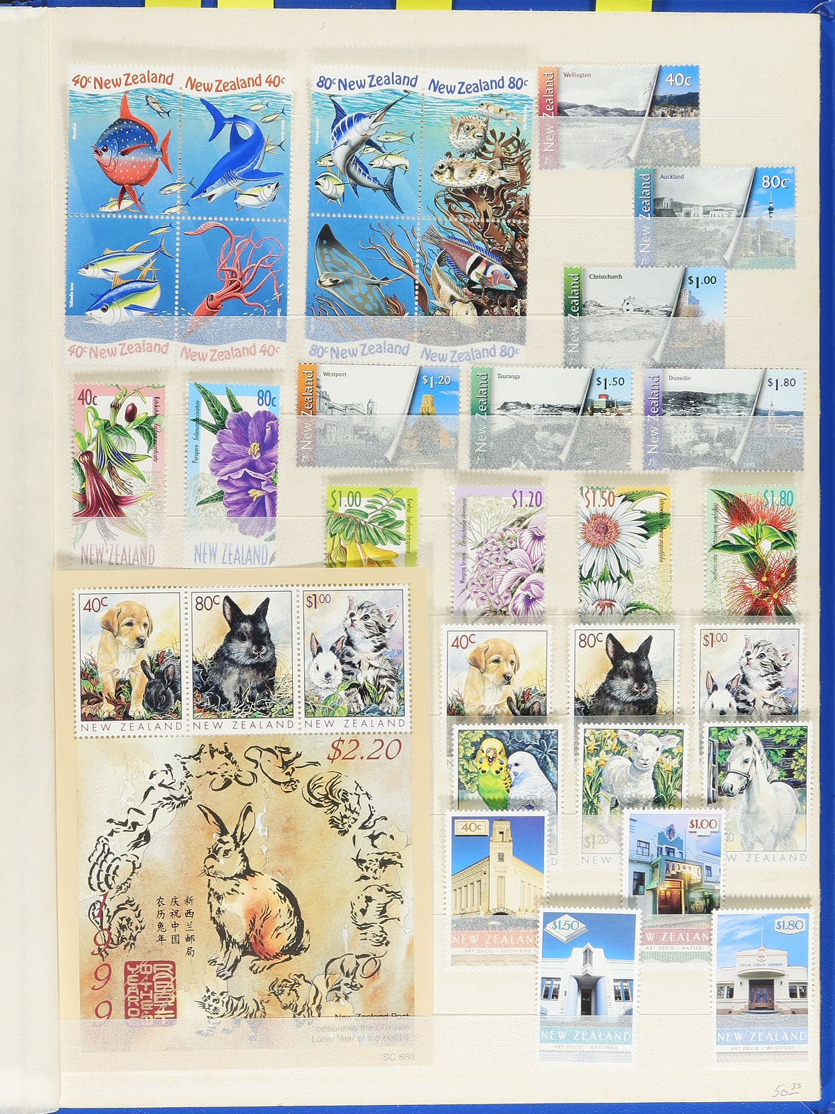 Lovely collection of mint Never Hinged New Zealand, 1969-2012, containing 950 stamps and roughly 35 souvenir sheets in a Unisafe stockbook. The collection contains Post Office purchases, neatly organized ranging from Scott #434a/2392, noting singles and sets cataloging in the $5 to $10 and up range. Face value alone totals NZ$1,029.00 ($839.60 CDN). A lovely clean collection for New Zealand and worldwide collectors. 2026 Scott US$1,369.00 =