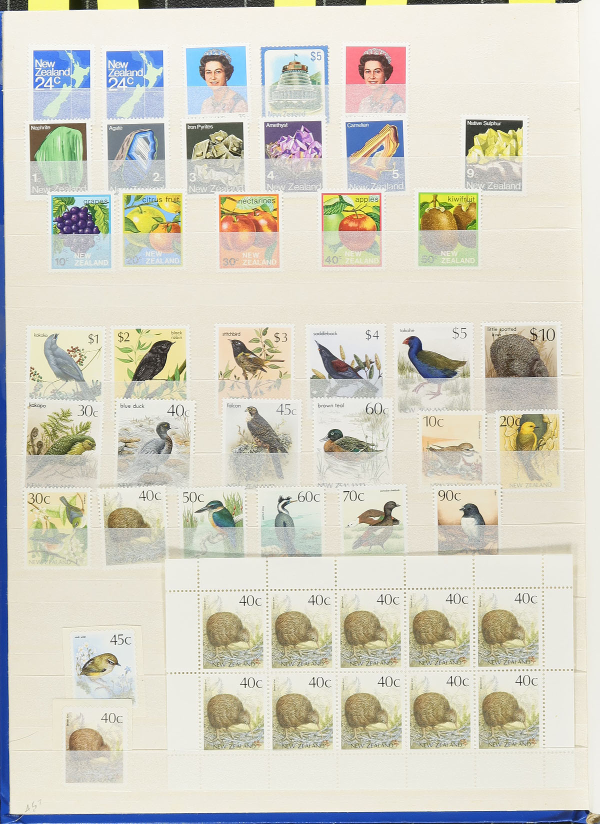 Lovely collection of mint Never Hinged New Zealand, 1969-2012, containing 950 stamps and roughly 35 souvenir sheets in a Unisafe stockbook. The collection contains Post Office purchases, neatly organized ranging from Scott #434a/2392, noting singles and sets cataloging in the $5 to $10 and up range. Face value alone totals NZ$1,029.00 ($839.60 CDN). A lovely clean collection for New Zealand and worldwide collectors. 2026 Scott US$1,369.00 =