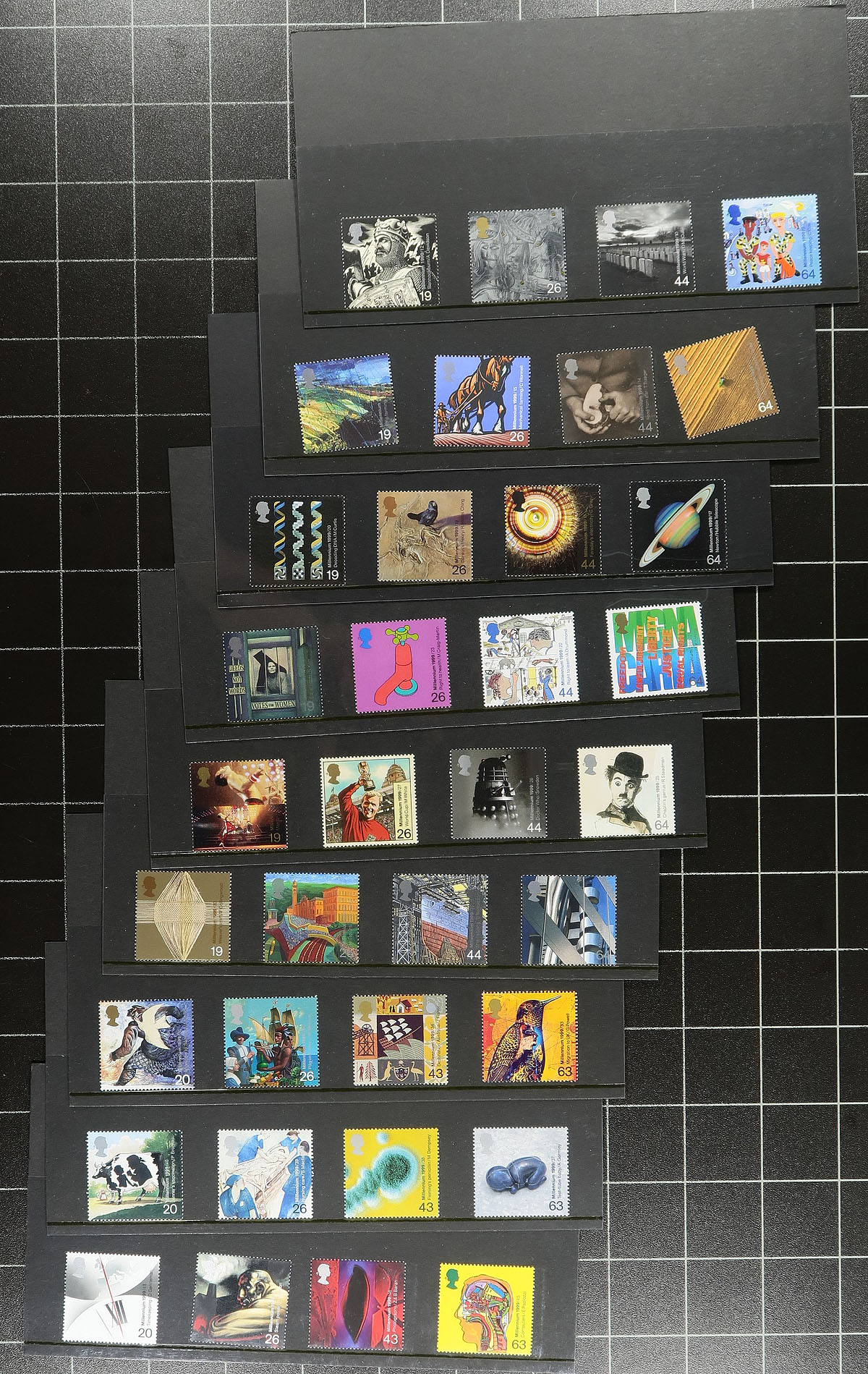 Group of roughly 100 Great Britain presentation packs, 1965-2007, in a box, with roughly 30% being pre-1971. We note some packs cataloguing in the £5 to £15 and up range. Face value alone totals £202.00 (including roughly 60x 1ST stamps). A nice clean lot for collectors and postage users alike. 2022 Stanley Gibbons Concise £560.00 in CDN dollars =