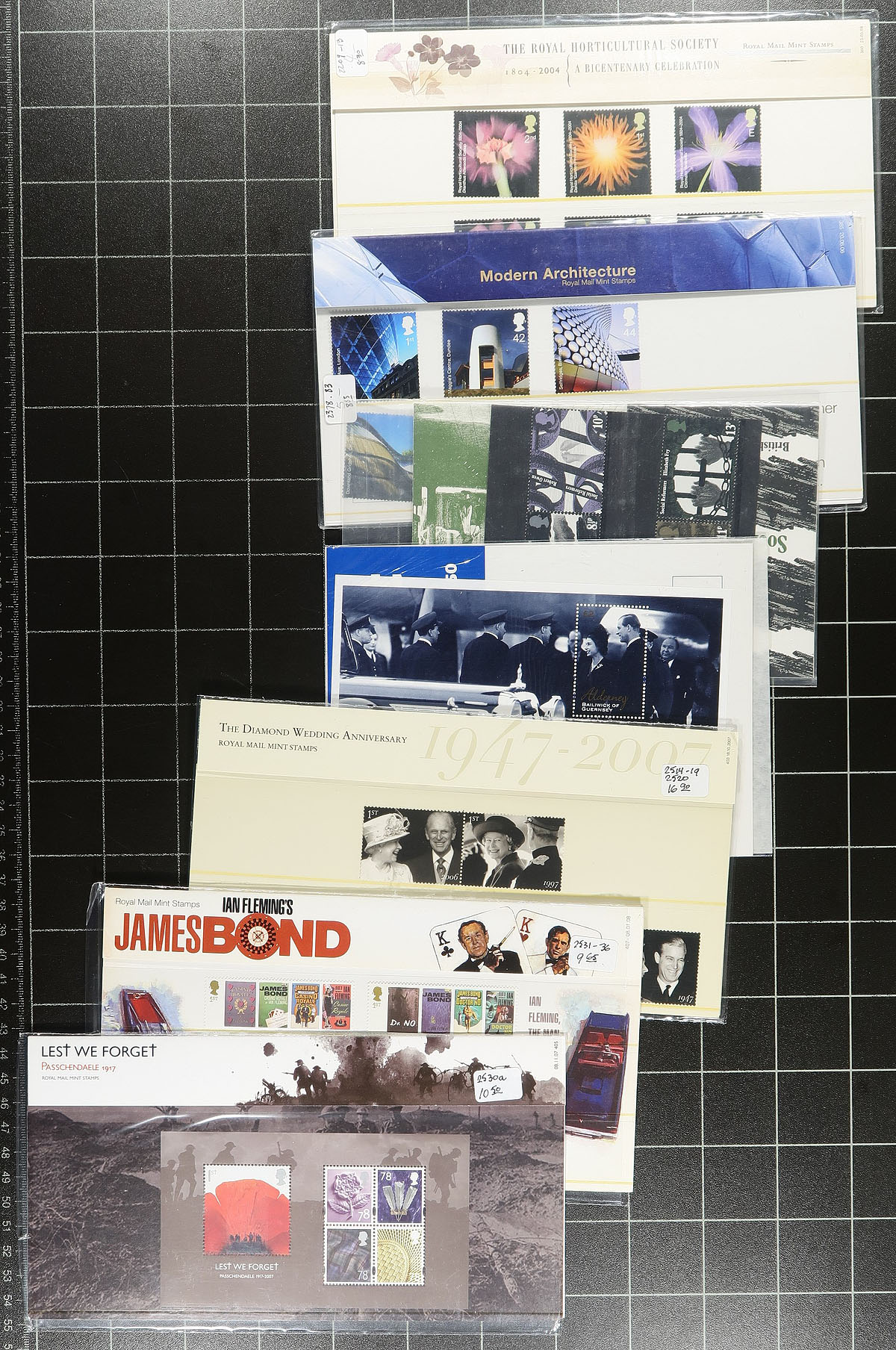 Group of roughly 100 Great Britain presentation packs, 1965-2007, in a box, with roughly 30% being pre-1971. We note some packs cataloguing in the £5 to £15 and up range. Face value alone totals £202.00 (including roughly 60x 1ST stamps). A nice clean lot for collectors and postage users alike. 2022 Stanley Gibbons Concise £560.00 in CDN dollars =