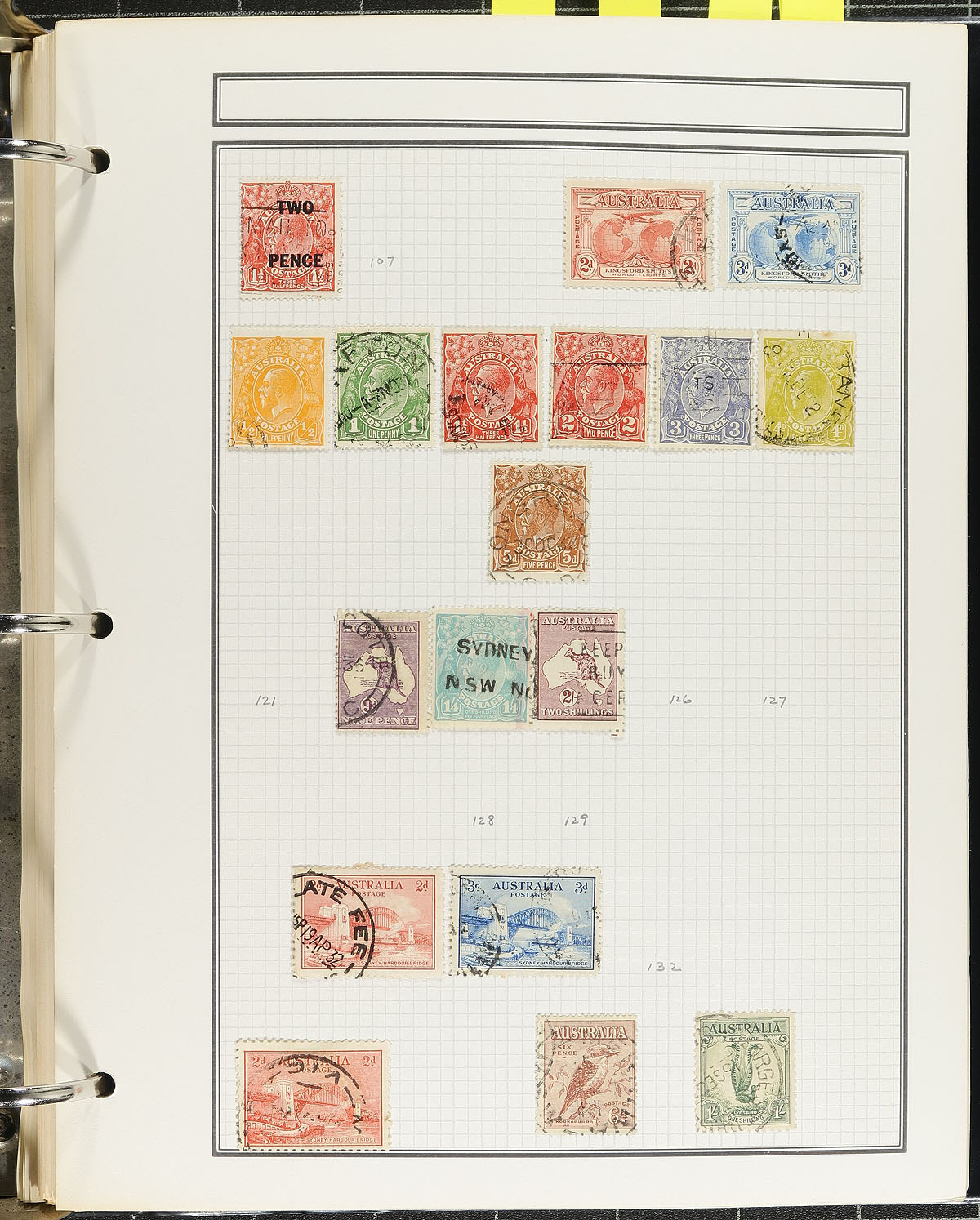 Attractive collection of used Australia, 1913-1992, containing many hundreds of stamps, neatly arranged on several quadrille pages. The collection begins with decent representation of Kangaroos and KGV heads, noting Scott #s 1-10 ($241 total), 19-37 ($127 total), 45-54 ($222 total), 66-76 ($67 total), along with some singles, sets, and partial sets cataloguing $10 to $20 and up. A nice collection that should be expanded. Estimate =