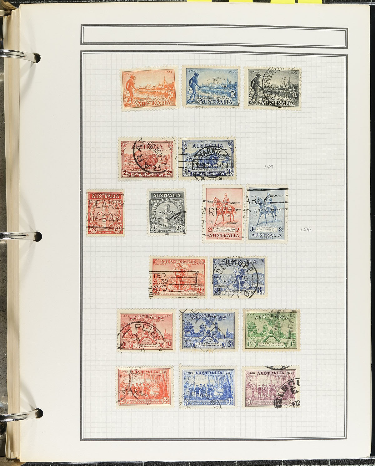 Attractive collection of used Australia, 1913-1992, containing many hundreds of stamps, neatly arranged on several quadrille pages. The collection begins with decent representation of Kangaroos and KGV heads, noting Scott #s 1-10 ($241 total), 19-37 ($127 total), 45-54 ($222 total), 66-76 ($67 total), along with some singles, sets, and partial sets cataloguing $10 to $20 and up. A nice collection that should be expanded. Estimate =