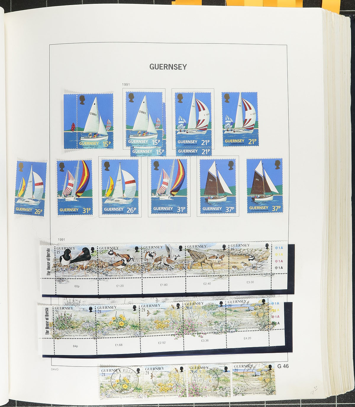 Collection of mint and used Channel Islands in a thick DAVO album, 1969-1993, containing a few thousand stamps, along with roughly 50 souvenir sheets. The collection has representation from Guernsey (Scott #8/525), Isle of Man (#12/576), and Jersey (#7/654), with a mint and or a used stamps mostly hinged onto album pages, along with selections of postage dues. Scott catalogue value for the collection totals US$1,914.00 (Jersey $564.00, Guernsey $595.00, Isle of Man $755.00). A nice collection that should be expanded further. 2025 Scott US$1,914.00 =