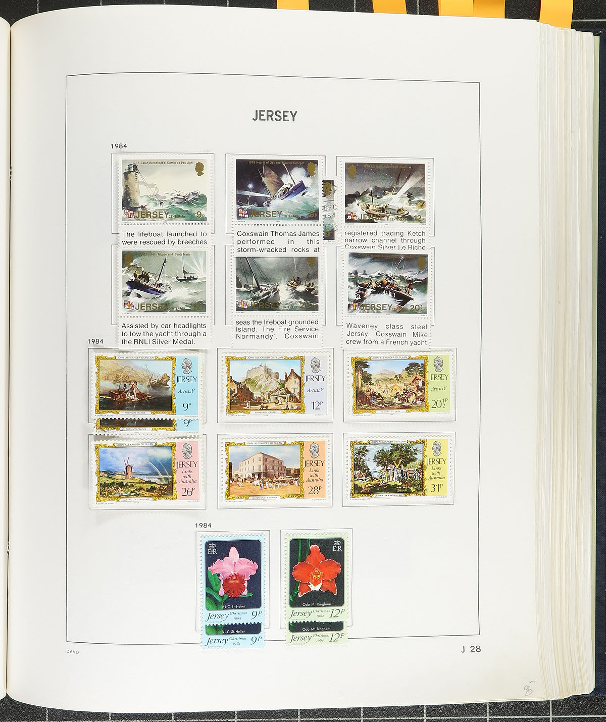 Collection of mint and used Channel Islands in a thick DAVO album, 1969-1993, containing a few thousand stamps, along with roughly 50 souvenir sheets. The collection has representation from Guernsey (Scott #8/525), Isle of Man (#12/576), and Jersey (#7/654), with a mint and or a used stamps mostly hinged onto album pages, along with selections of postage dues. Scott catalogue value for the collection totals US$1,914.00 (Jersey $564.00, Guernsey $595.00, Isle of Man $755.00). A nice collection that should be expanded further. 2025 Scott US$1,914.00 =