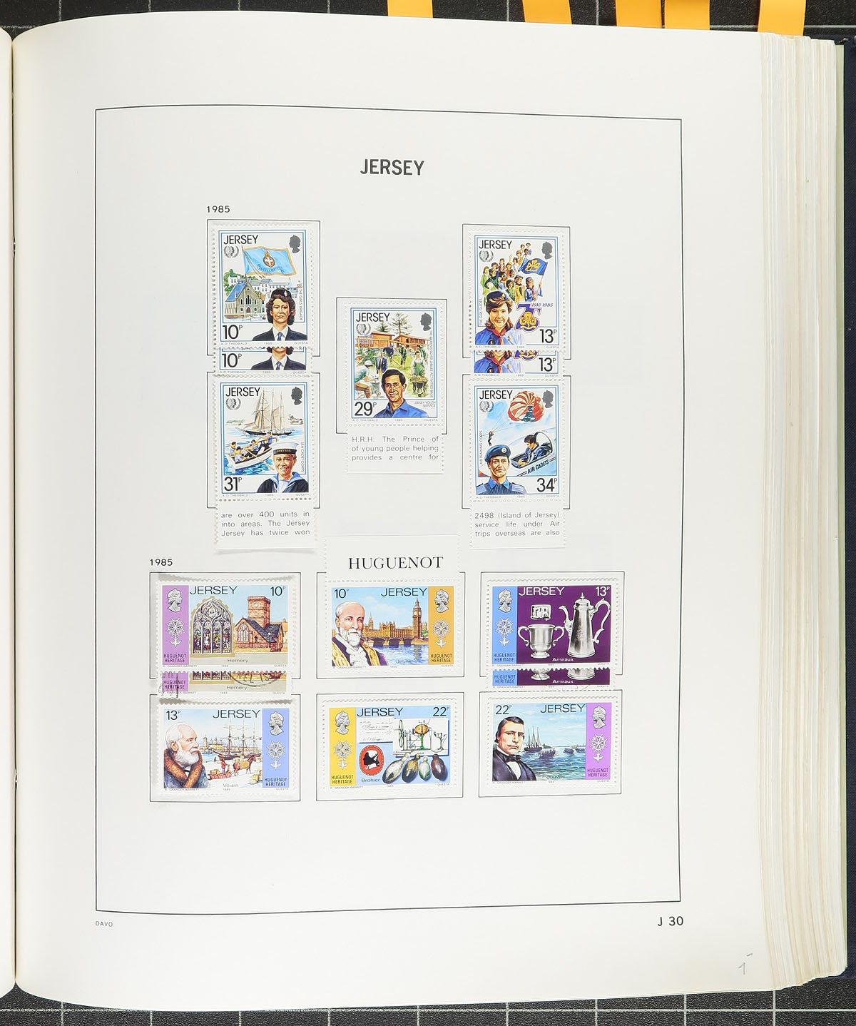Collection of mint and used Channel Islands in a thick DAVO album, 1969-1993, containing a few thousand stamps, along with roughly 50 souvenir sheets. The collection has representation from Guernsey (Scott #8/525), Isle of Man (#12/576), and Jersey (#7/654), with a mint and or a used stamps mostly hinged onto album pages, along with selections of postage dues. Scott catalogue value for the collection totals US$1,914.00 (Jersey $564.00, Guernsey $595.00, Isle of Man $755.00). A nice collection that should be expanded further. 2025 Scott US$1,914.00 =