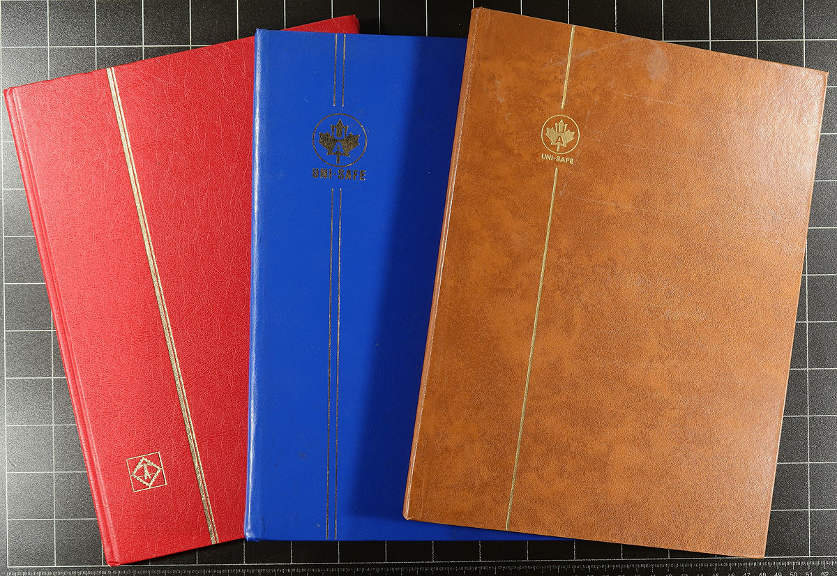 Stockbooks. Group of 12 gently used, half are Lighthouse brand, in a range of 16-64 page configurations, and all have white-pages. Included is a wonderful 64-page "France" specialized illustrated cover stockbook. A nice clean lot, most "like new" and even one "new", still in the plastic wrap. Nice to get these outside retail, at a fraction of the "new" cost. Estimate =