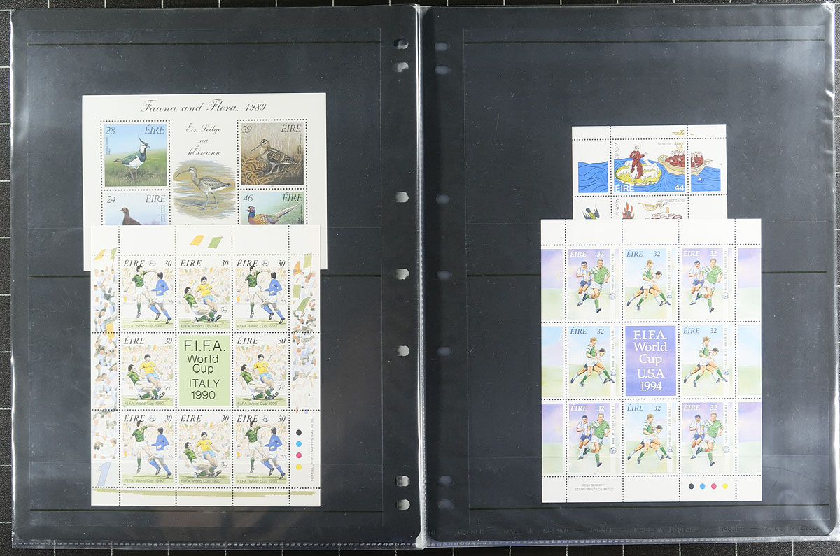 Group of never hinged Ireland collected for blocks and sheetlets, 1970's-2000's all in several stock pages. The lot generally ranges from Scott #326a/1962b, containing several blocks and multiples, along with some souvenir sheets and sheetlets.. A nice clean lot for collectors and dealers alike. Owner's older 2020 Scott US$722.00 =