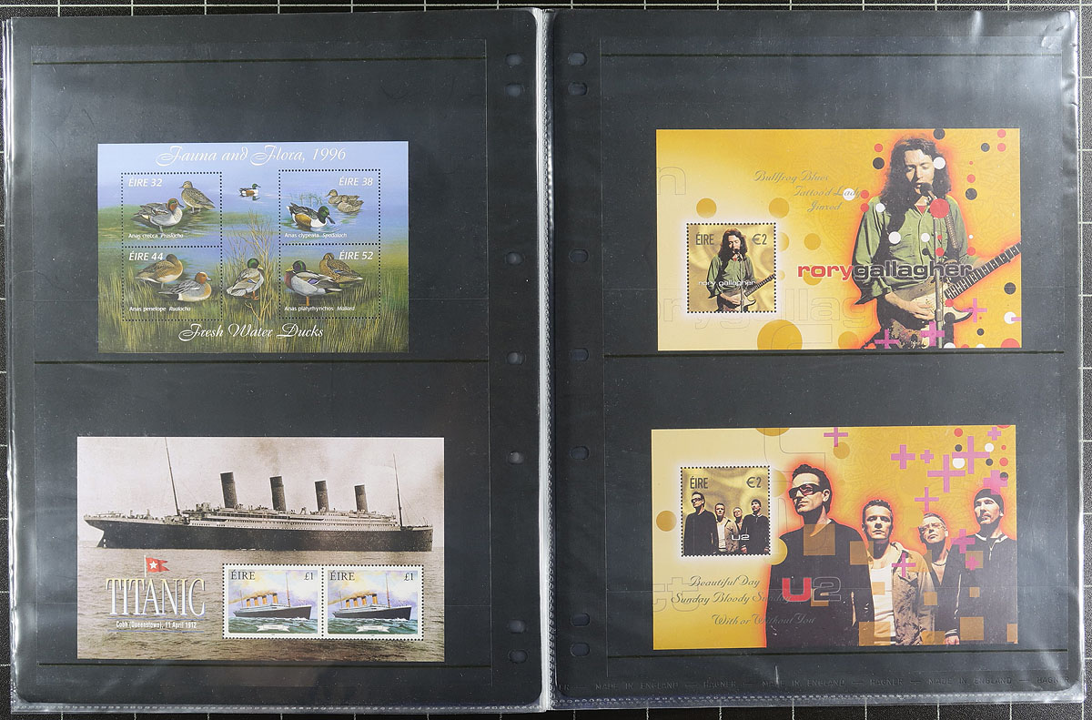 Group of never hinged Ireland collected for blocks and sheetlets, 1970's-2000's all in several stock pages. The lot generally ranges from Scott #326a/1962b, containing several blocks and multiples, along with some souvenir sheets and sheetlets.. A nice clean lot for collectors and dealers alike. Owner's older 2020 Scott US$722.00 =
