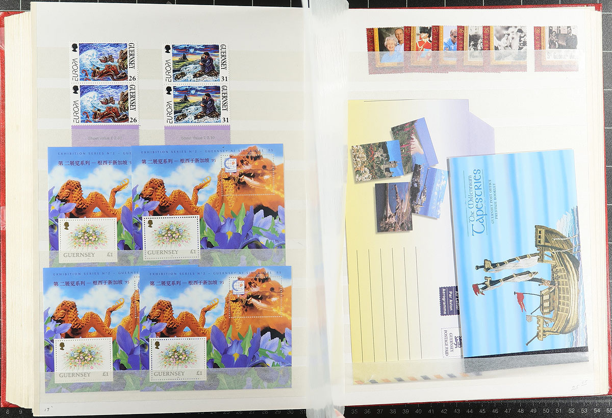Guernsey. Nice collection / accumulation of never hinged Guernsey, 1974-1998, containing over 1,000 stamps in a stockbook. The collection generally ranges from Scott #95/635, including a few souvenir sheets and booklet panes, along with examples of postage dues. Duplication up to three for a few issues. A nice organized collection for collectors and dealers alike. 2026 Scott US$922.00 =