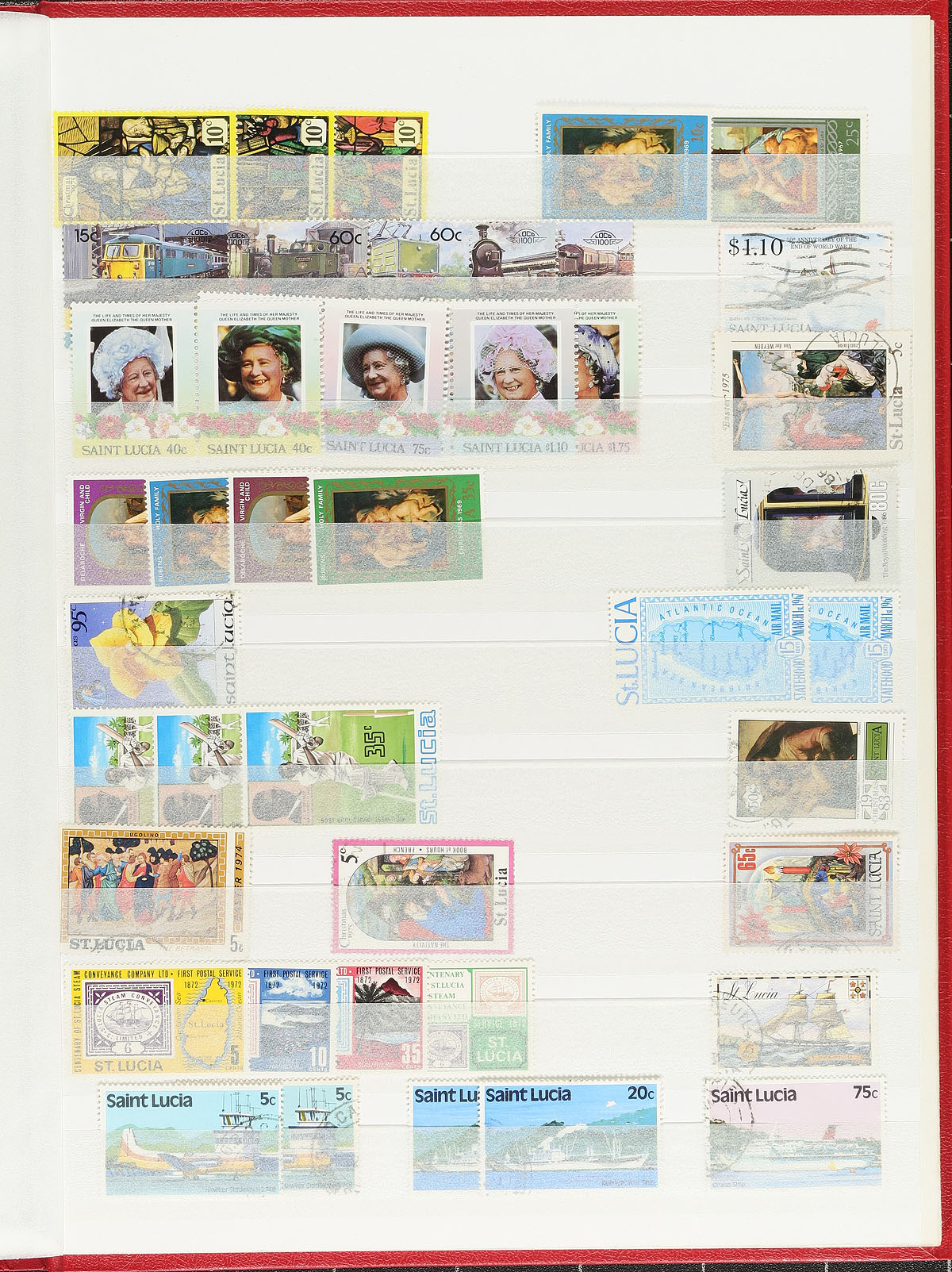 A European / British Commonwealth "balance of consignment" offering of 10 different "mini collections", which on their own were not quite enough to make a lot, but combined make for an enticing philatelic adventure. In no particular order, included are 1) Ghana, binder with 506 stamps on computer generated pages / stockpages, owner notes 80% different. 2) Gold Coast Collection on pages, plus 90 stamps on stockpage, owner's 2019 Scott US$395.05. 3) India in 16-page stockbook with 1497 stamps (lots of cancel interest). 4) Cook Islands in 16-page stockbook with 291 stamps and 27 souvenir sheets. 5) Papua New Guinea in 16-page stockbook with 427 stamps and 2 souvenir sheets. 6) Falkland Islands and Dependencies in 16-page stockbook with Falklands (312 stamps, 4 souvenir sheets) and Dependencies (109 stamps, 1 souvenir sheet). 7) Saint Lucia in 16-page stockbook, with 480 stamps and 2 souvenir sheets. 8) Netherlands 1949 Queen Juliana used, partially specialized accumulation of 725 stamps on pages. 9) Netherlands Antilles / Suriname in 32-page stockbook with over 1000 stamps. 10) Sweden in 32-page stockbook with stock of 2110 stamps. A nice group, housed in 7 stockbooks and 3 binders, which fit in a winebox. Estimate =