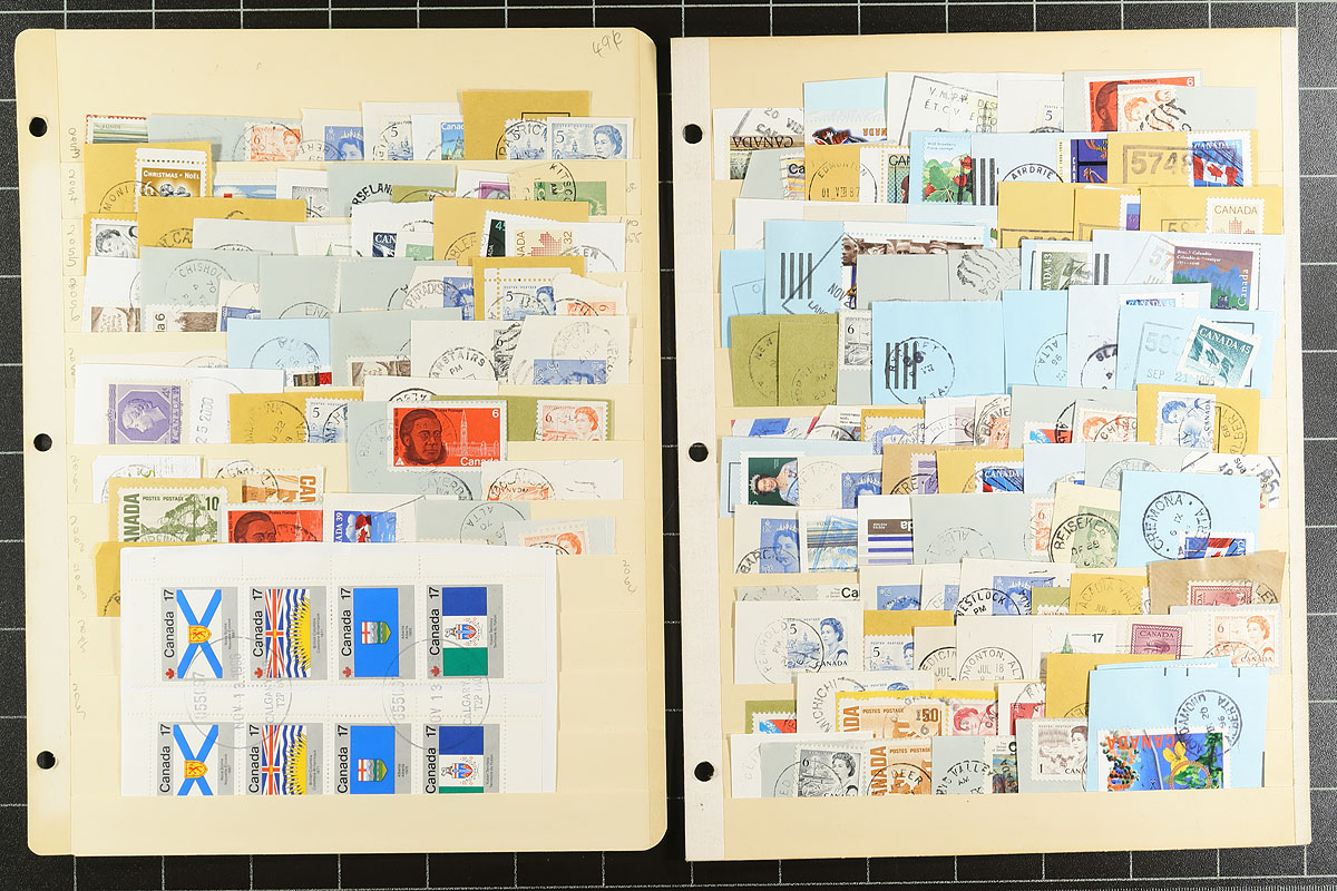 British Columbia and Alberta Postmarks. A binder containing stockpages with BC and Alberta cancels on stamp/piece. Includes 500x Alberta and 260x British Columbia postmarks, mostly from the QEII period, but did notice a few earlier. A nice variety of postmark types noticed including CDS, POCON, Duplex, Retail Centre, MOON etc. Estimate =