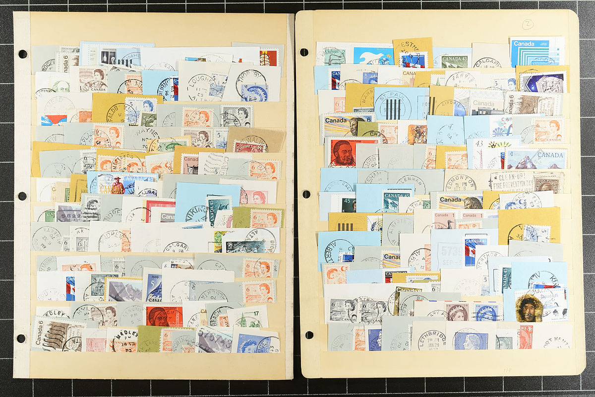 British Columbia and Alberta Postmarks. A binder containing stockpages with BC and Alberta cancels on stamp/piece. Includes 500x Alberta and 260x British Columbia postmarks, mostly from the QEII period, but did notice a few earlier. A nice variety of postmark types noticed including CDS, POCON, Duplex, Retail Centre, MOON etc. Estimate =