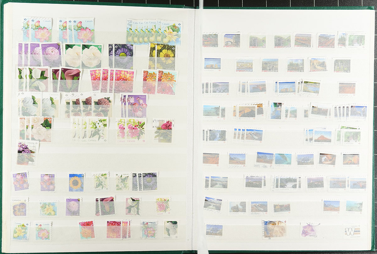 Mostly Modern "Hodge-Podge" of over 2500 stamps off-paper within a 32-page stockbook. While seemingly random, perhaps some as soaked off incoming mail from the consignor, there is a surprising amount of both commemorative and definitive modern issues, up the King Charles issue, plus several pages of $1.00-plus high-values at the back of the book. All pages are shown to appreciate the scope of the lot. Estimate =