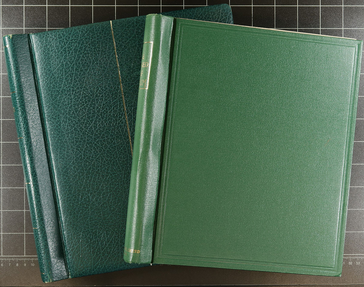 Box Lot of Albums, with lots of life left in them! A selection of 7 albums, from a variety of different manufacturers, including (in no particular order). 1) Lighthouse large black padded cover album. 2) Large black hardcover sheet-protector album (unknown brand). 3) Lighthouse deluxe Hingeless Album "Deutsches Reich" on the spine, with pages for sheets / large blocks. 4) Stanley Gibbons Utile Hinged Leaf Album, with unused quadrille pages. 5) Great Britain (II) Lighthouse Hingeless Album, covering the start of the QEII period (1952) up to 1989, 6) Large red stockbook (unknown maker). 7) Scott Specialty Series Canada, 2-post album with matching slipcase. Huge original cost on these. Estimate =