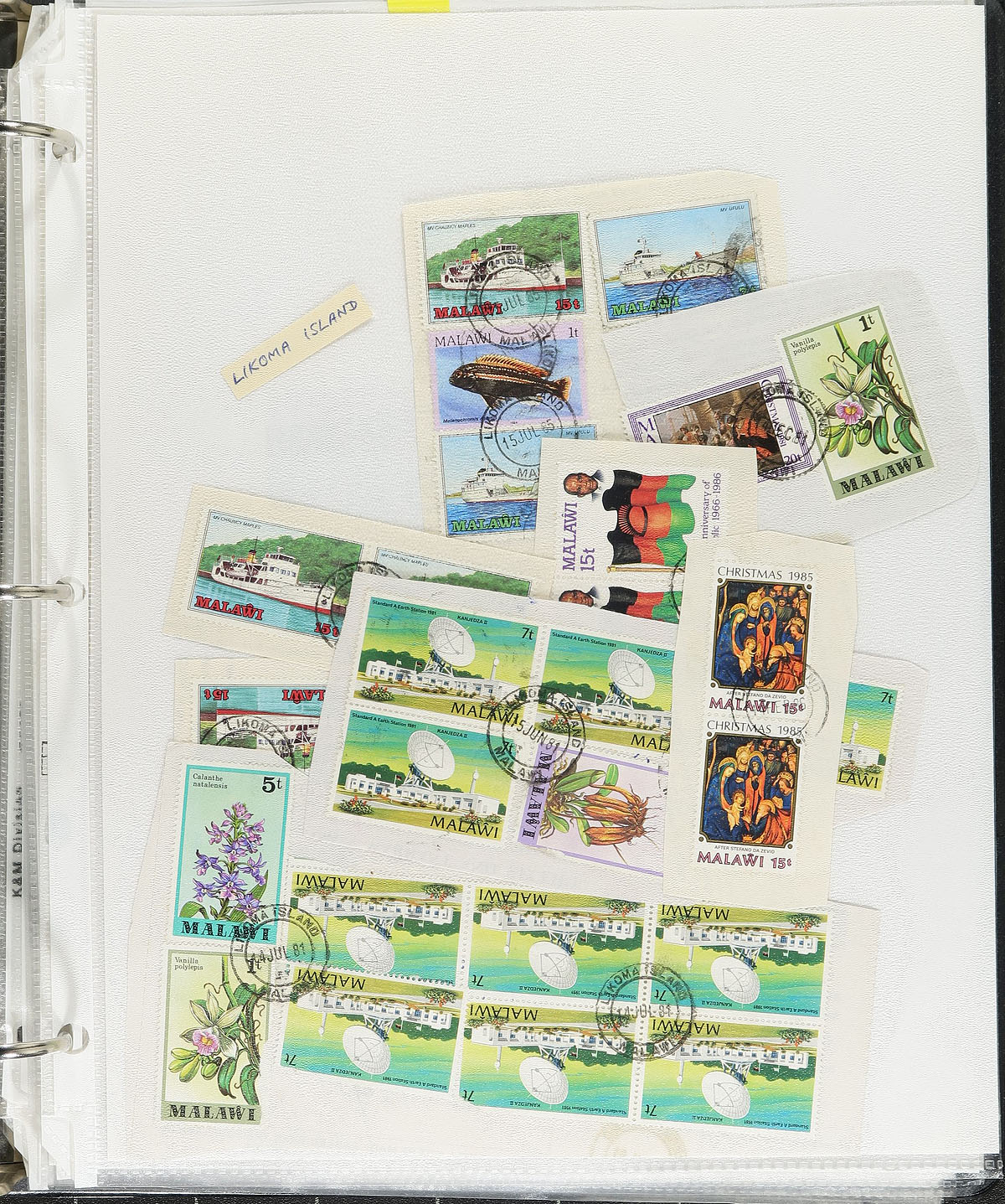 Interesting collection of Nyasaland / Malawi town postmarks, 1890's-1980's, with many hundreds of stamps, on and off piece, on roughly 75 well described pages. The collection has representation from roughly 55 different towns from B to L, along with maps showing the various locations, and some post office information and populations (some very small towns), noting Ekwendeni, Embangweni, and Limbe, just to name a few. Postmarks include CDS handstamps, military posts (noting Fort Anderson, Fort Hill, Fort Manning), and more. A very nice collection that should be further studied. Estimate =