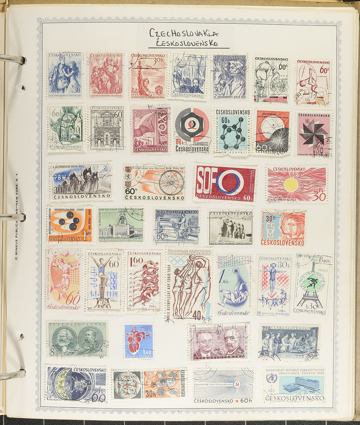 Eastern Europe. Extensive collection of primarily used Eastern Europe, 1880's-1980's, containing over 4,000 stamps on over 100 Minkus album pages in a thick binder. We note representation from Bulgaria, Czechoslovakia, Hungary, Poland, and Romania, with the majority of the material up to the 1960's. Postmarks encountered include mostly cds including many dated socked on the town cancels. A nice lot for the specialist and postmark hunter. Estimate =