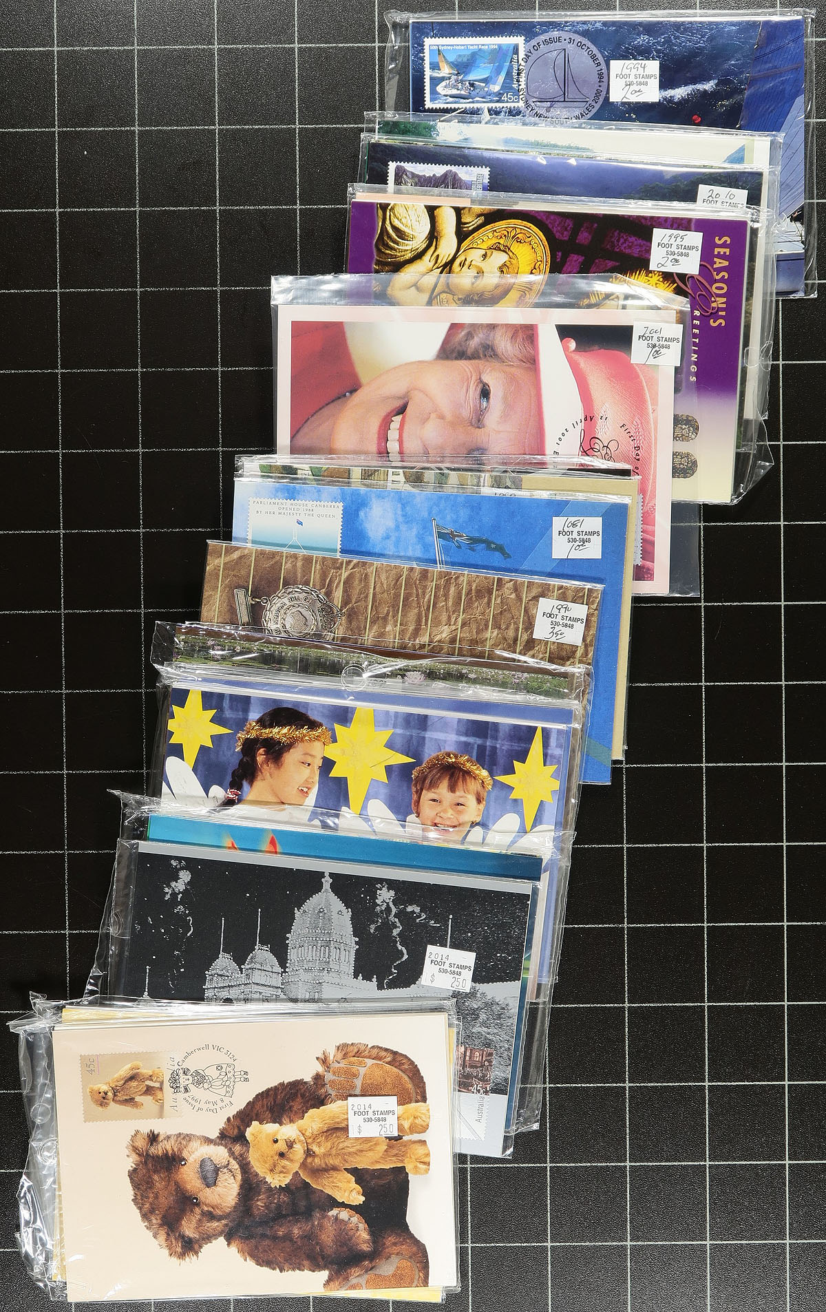 Collection of roughly 1,300 Australia maximum cards, 1990-2012, all with matching stamps tied by first day cancels. Most are still in the original cello-packs, and huge retail price at roughly $2,000. A nice clean lot, ideal for topical and thematic collectors. Estimate =