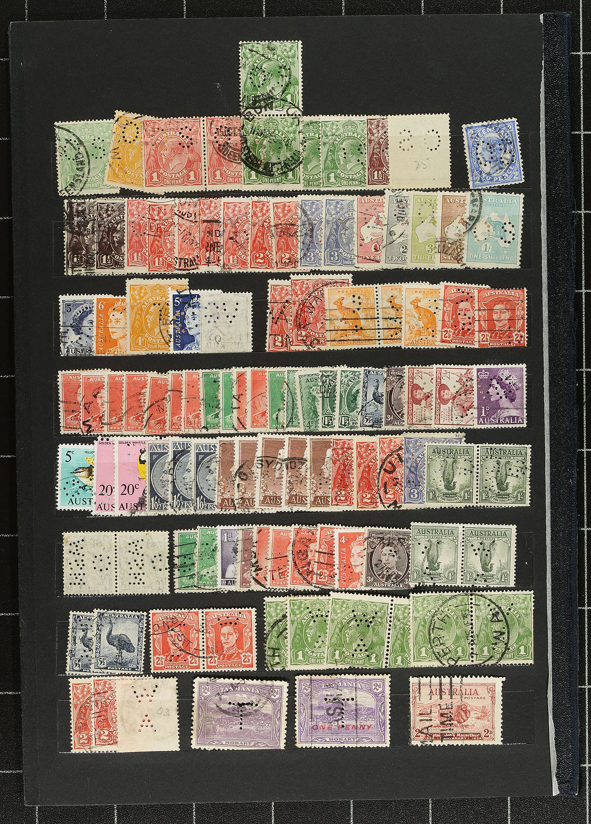 Accumulation of used Australia, 1913-2011, containing a few thousand stamps in roughly 33 stock pages. A quick check of material indicated a bit of everything including selections of Kangaroos, King George V Heads, sets, back of the book material noting postage dues, officials, airmails, and perfins. We spotted a few items cataloguing in the $10 range and up, leaving better finds to the dedicated collector. Owner's 2012 Scott catalogue value for the lot totals US$2,374.00, with duplication up to 10 for some issues. Ideal for the Australia or worldwide collector, with online photos showing a few sample pages. Estimate =