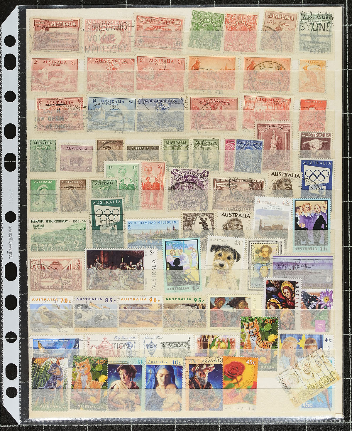 Accumulation of used Australia, 1913-2011, containing a few thousand stamps in roughly 33 stock pages. A quick check of material indicated a bit of everything including selections of Kangaroos, King George V Heads, sets, back of the book material noting postage dues, officials, airmails, and perfins. We spotted a few items cataloguing in the $10 range and up, leaving better finds to the dedicated collector. Owner's 2012 Scott catalogue value for the lot totals US$2,374.00, with duplication up to 10 for some issues. Ideal for the Australia or worldwide collector, with online photos showing a few sample pages. Estimate =