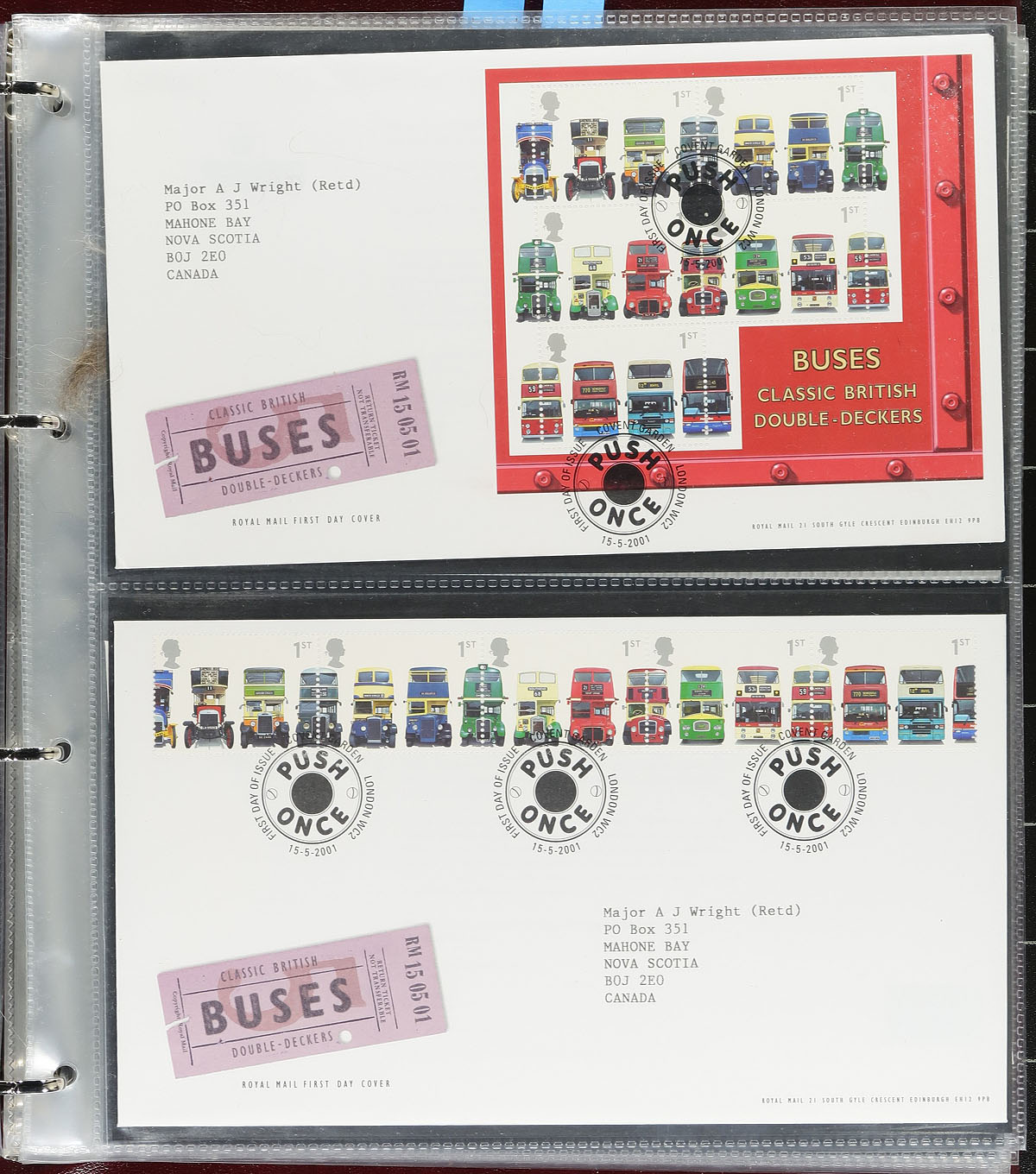 Collection of roughly 300 Great Britain first day covers in 4 Royal Mail First Day Cover albums, 1980's-2010. This lovely collection contains singles, sets, booklet panes, and souvenir sheet frankings, and includes roughly 80 high value Machin FDC's, and 80 Regional issues. Many of the covers have catalogue values provided by the owner, many ranging in the £5 to £15 range, with a total for the collection at £1,953.00. A nice grouping for collector and dealers alike. Estimate =