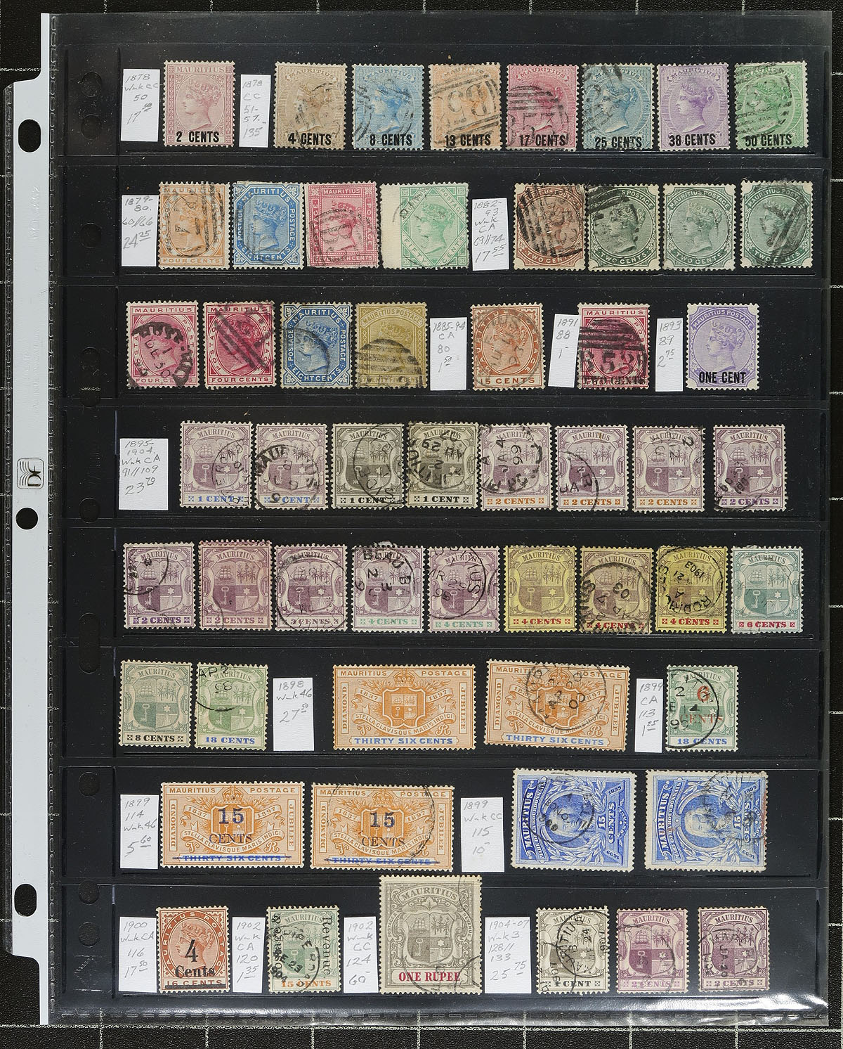 Nice collection of mint and used Mauritius, 1878-1967, containing roughly 225 stamps in a few stock pages. This neatly organized group ranges from Scott #50/305, including a few "back of the book" issues, noting a few singles and sets cataloguing $10 to $30 and up. A nice lot for the Commonwealth collector. 2026 Scott US$935.00 =