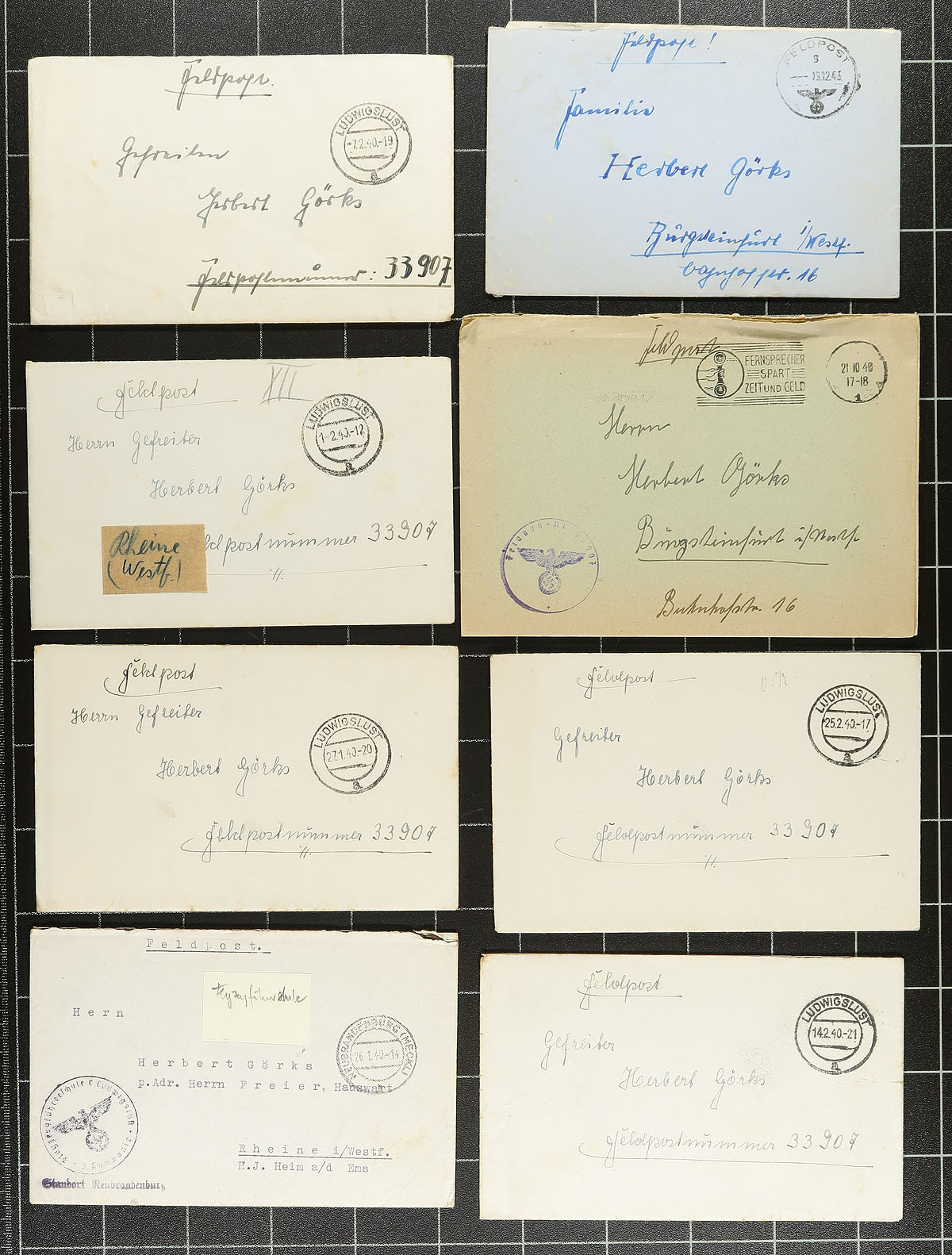 Group of 25 interesting Germany military covers, many with the letter enclosures, from the beginnings of world war II (September 1939-February 1940). Most were sent from Feldpost #30264, which was a test squadron set up in April 1939 which was to test the Junkers Ju 88 aircraft, which most likely saw action in the attack of Poland. A few covers of military handstamps and interesting pictorial postmarks. Scarce early material from a time when the German military was organizing itself for what was to come. Retail value totals $500.00. Estimate =