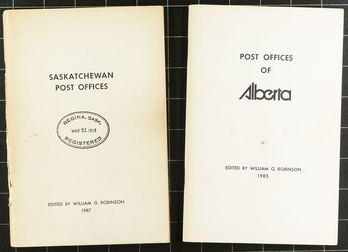Postal History Themed Philatelic Literature. A "wine box" array of over 20 books / handbooks with a Postal History theme, sure to bolster any philatelic library. Titles include "Stamping Around" (Jarrett book), "10 Auction" (Eaton Auction), several books on Western Canadian Postal History (including P.O. checklists), Airmail and Military related. Take a good look at the pictures, as all are imaged to give a full scope of the lot. Condition is fair to good on all, used as these came from an active collector's "working" library. Estimate =