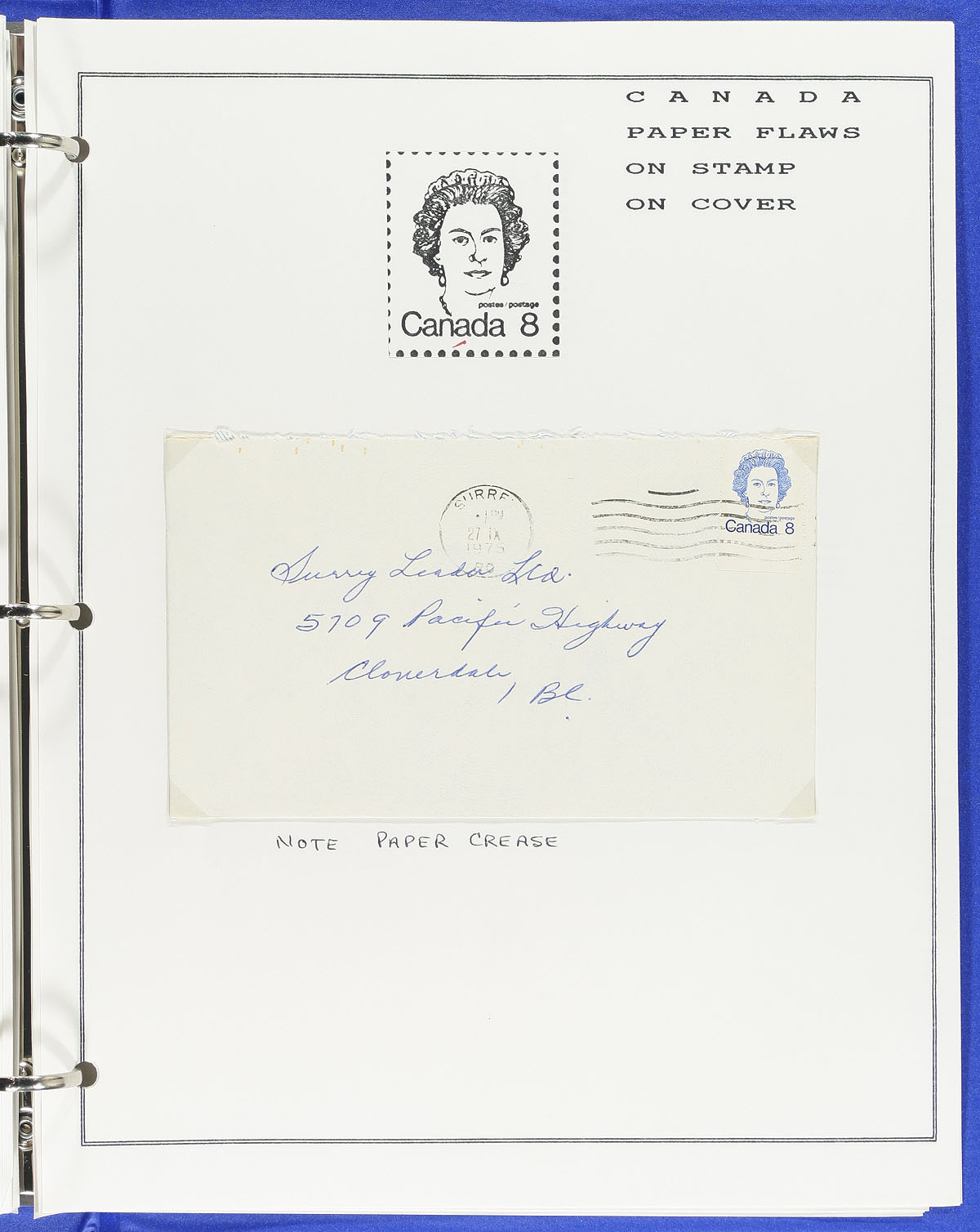 Official Mail Balance of Consignment. A two U-Haul box balance of a cover consignment including the large OHMS/Free holding that is for sale in this auction. Includes four stationery boxes filled with about 1500 #10 federal government envelopes with printed or metered indication that postage is prepaid. There is also a small postal stationery holding of 1920's-1950's "water" cards. There is a large flyspeck collection of #593, the 8c QEII "Caricature" issue, with a mounted collection and a couple of boxes of covers with many different minor print variations noted. The boxes are rounded out with handfuls of loose Canadian covers, ranging from "more government mail" to envelopes from personal correspondence. Thousands of items here. Estimate =