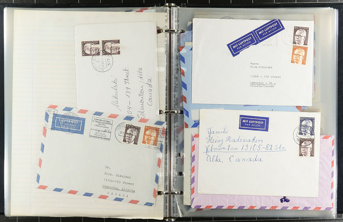 Rate study/accumulation of "President Heinemann" issue of 1970-1972 on covers, postcards and parcel cards, mostly sent to Canada. Because of the time period, the different sizes and weights of the envelopes and the different services used (e.g. first class, express, registered, airmail, etc.) there is a plethora of rate combinations here. A total of 128 items, with a bit of duplication, and a few which appear to have their original contents. A few have overlap with other definitive issues, but this makes for a strong basis for study after 50 years. Estimate =